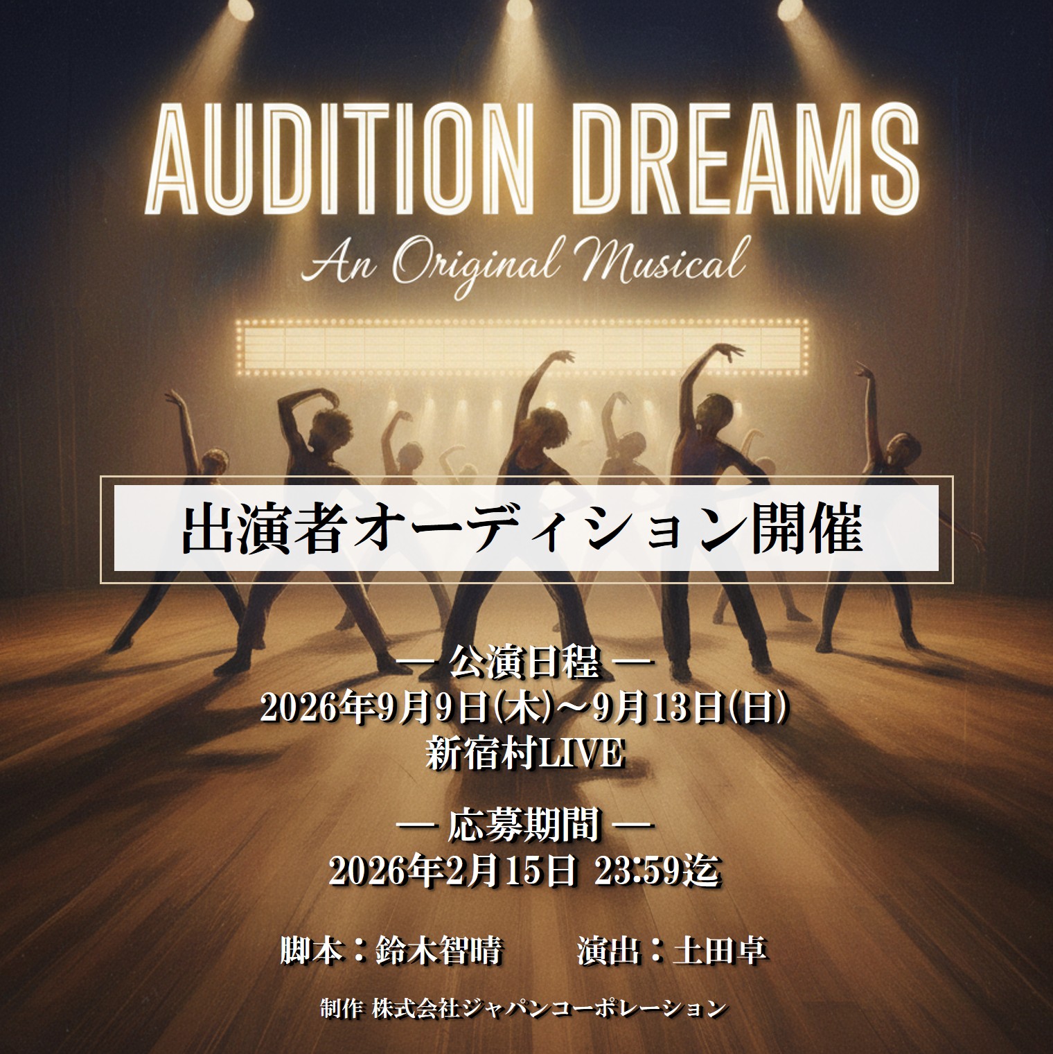 この度、2026年9月に上演する新作オリジナルミュージカルの出演者を広く募集します。